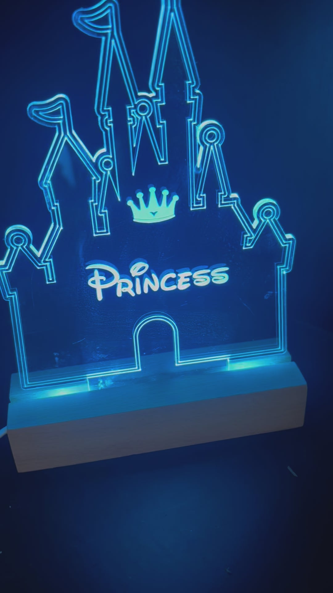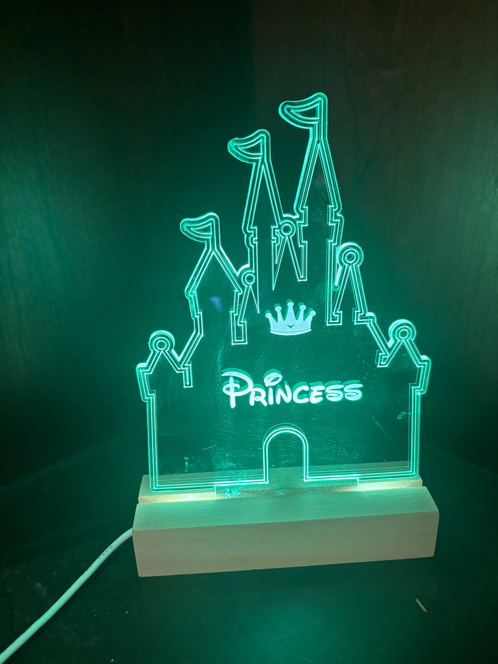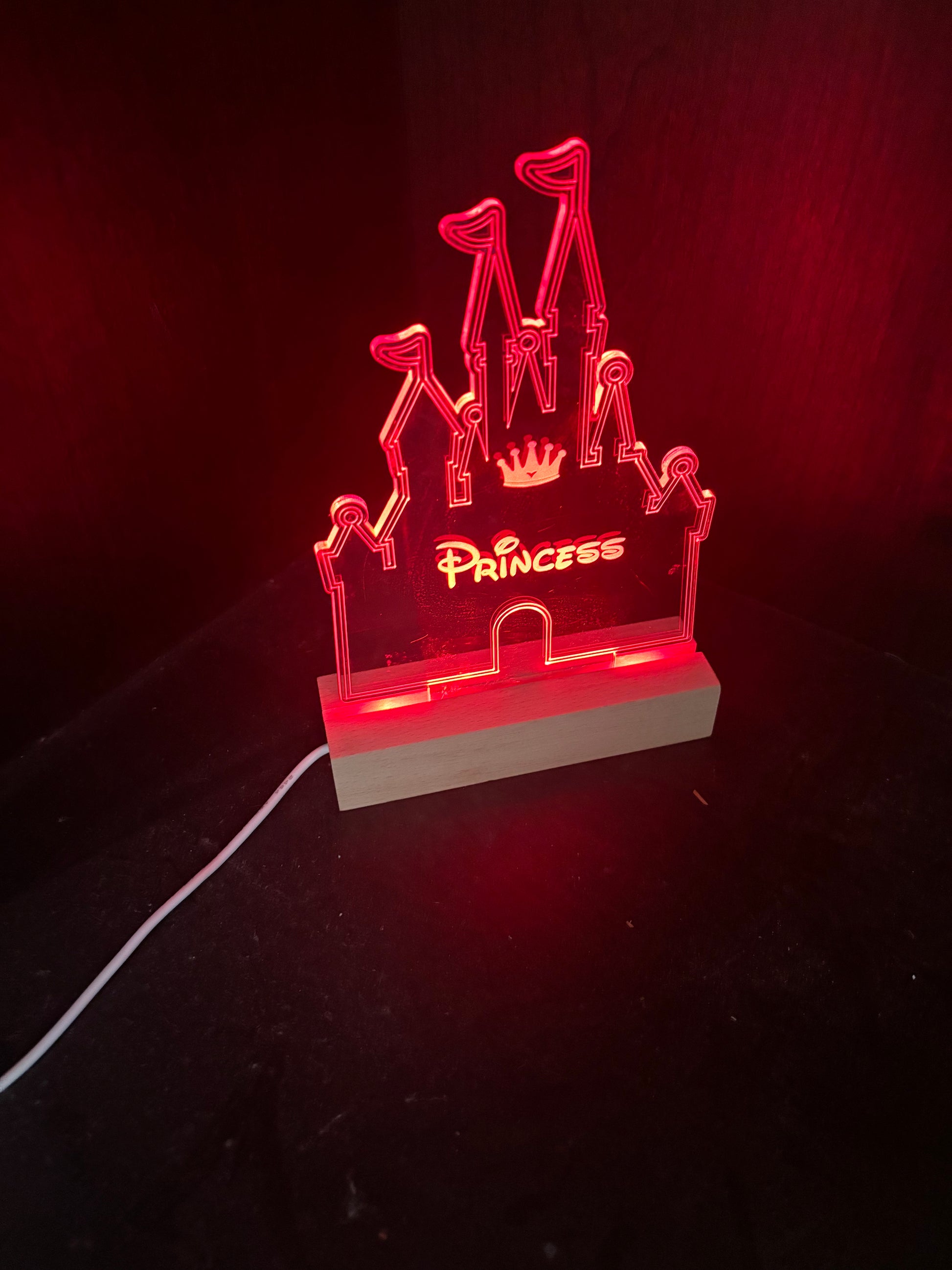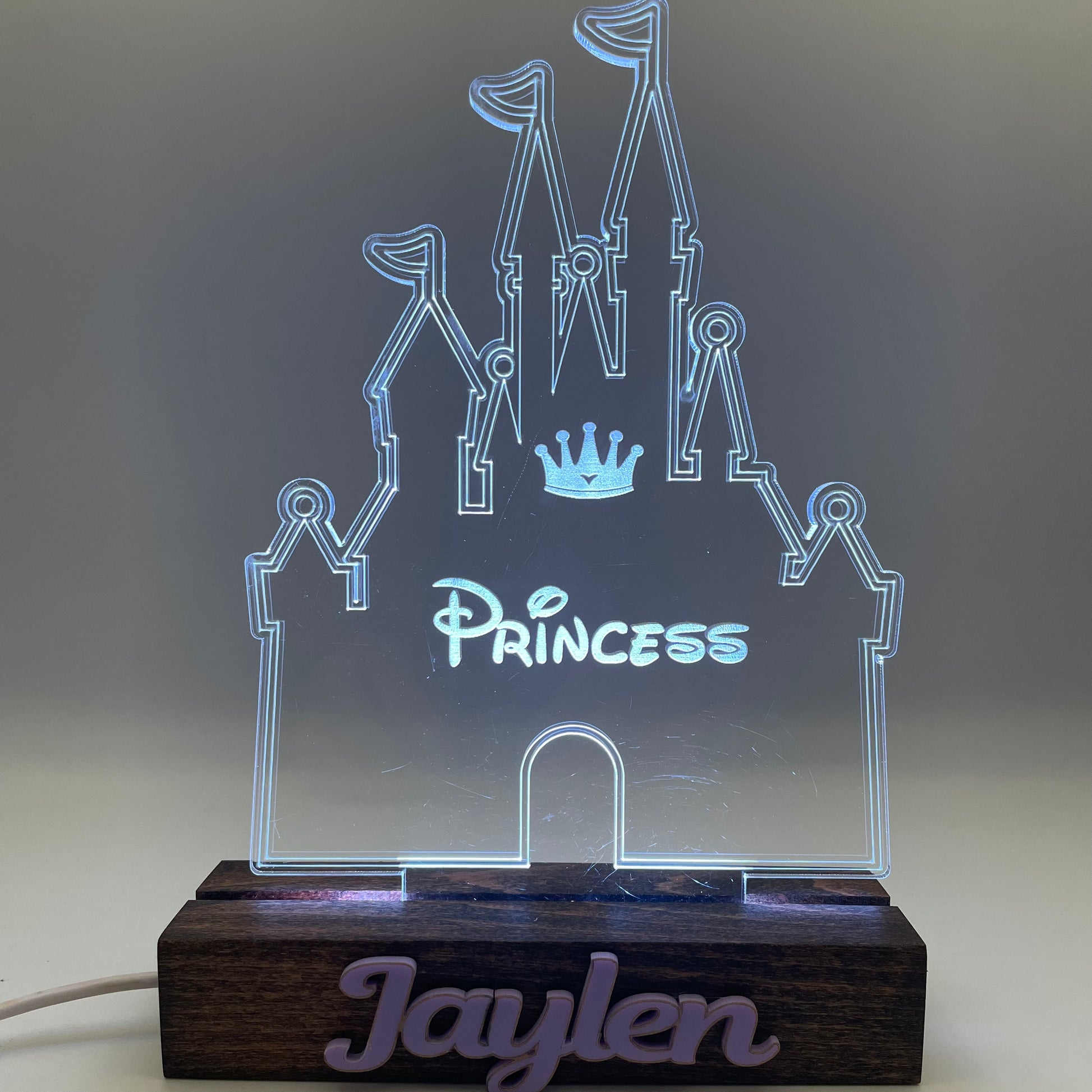 Illuminate your child's room with our Princess Night Light. Made of durable acrylic, this light features a charming princess sign, perfect for a child's room or nursery. The LED lighted stand adds a gentle glow, providing a sense of security for your little one. Seven colors and adjustments for brightness on light stand. Bring a touch of magic to your child's bedtime routine.