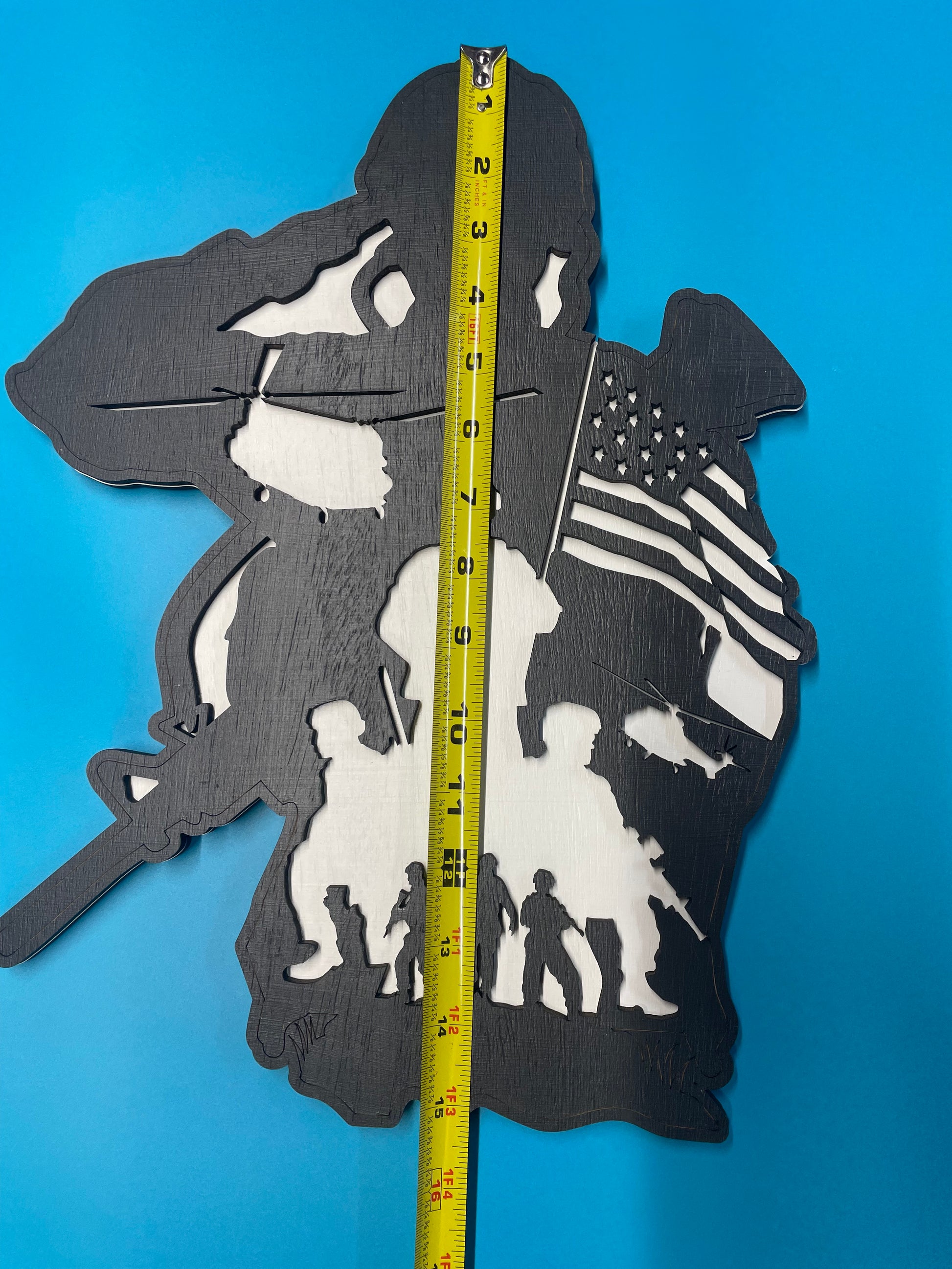 Show your patriotism with our American Soldier Sign! Made with 2 layers for durability, this sign proudly displays your support for our service members. Perfect for home or office, this sign is a great way to honor those who have served. 11" x 15"