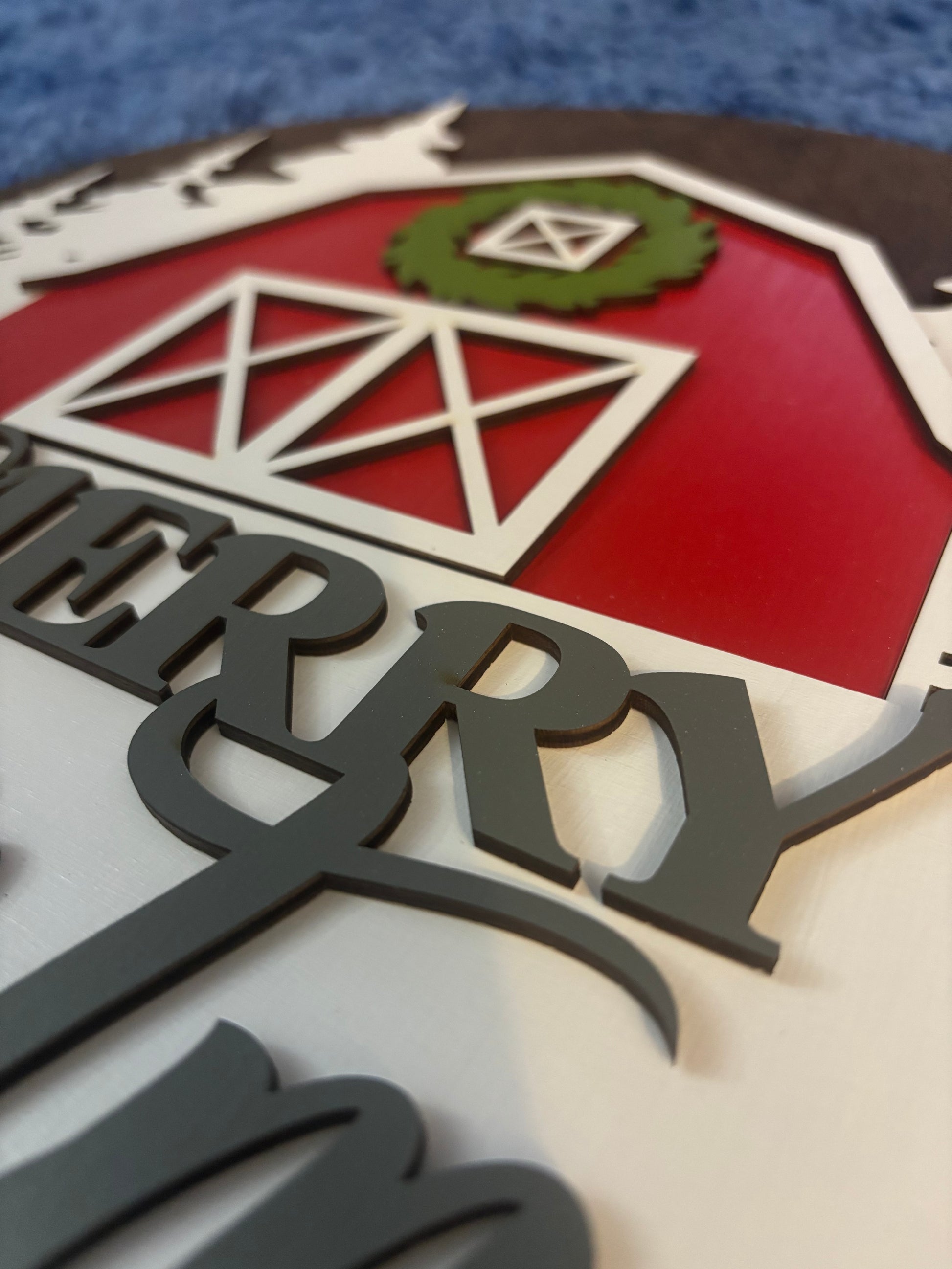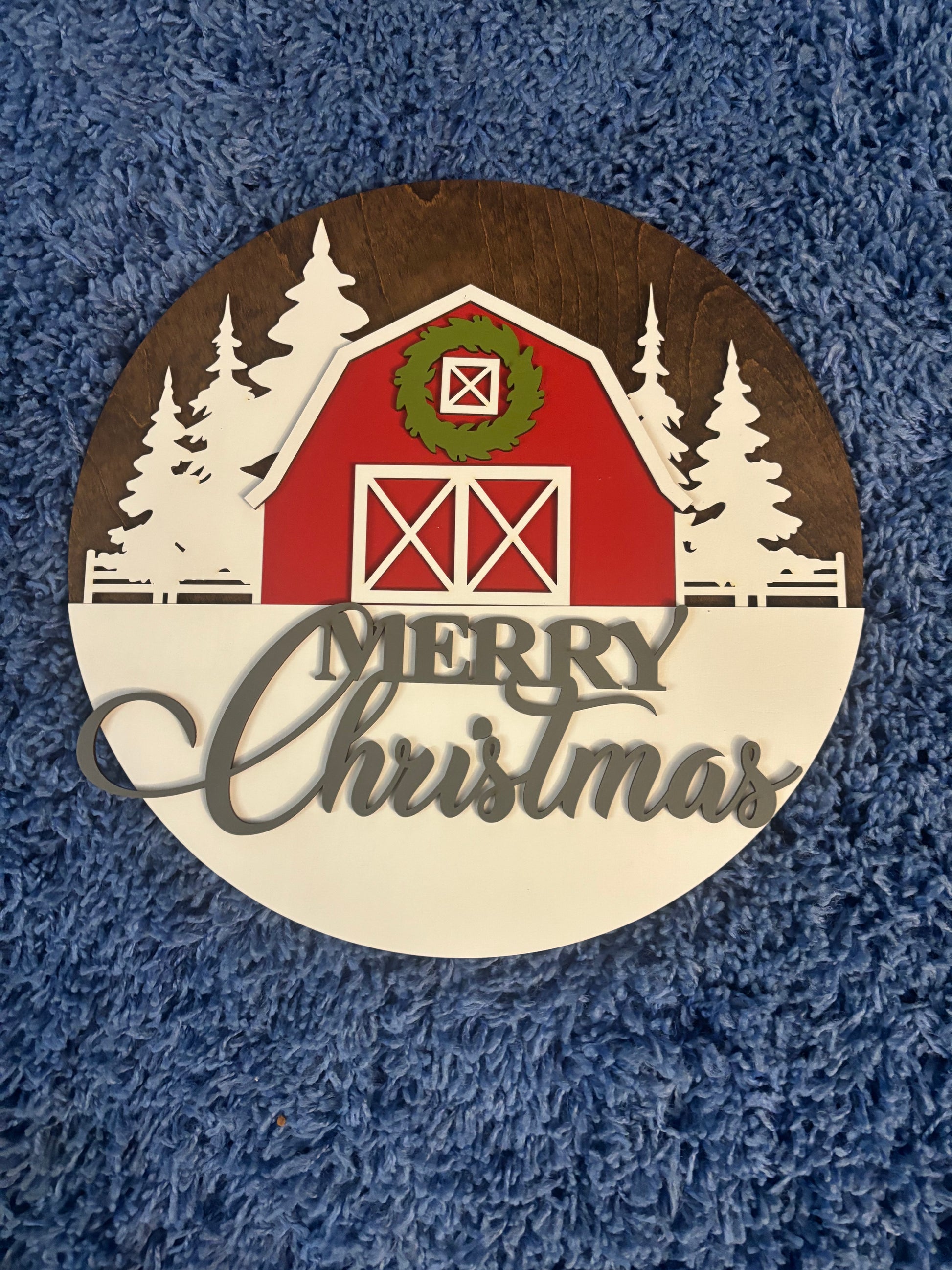 Add some holiday cheer to your home with our Christmas Sign-Merry Christmas Red Barn! Made with laser cut birch and hand painted, this 15" door hanger and wall decor features a festive red barn design. Spread joy and celebrate the season with this charming piece.