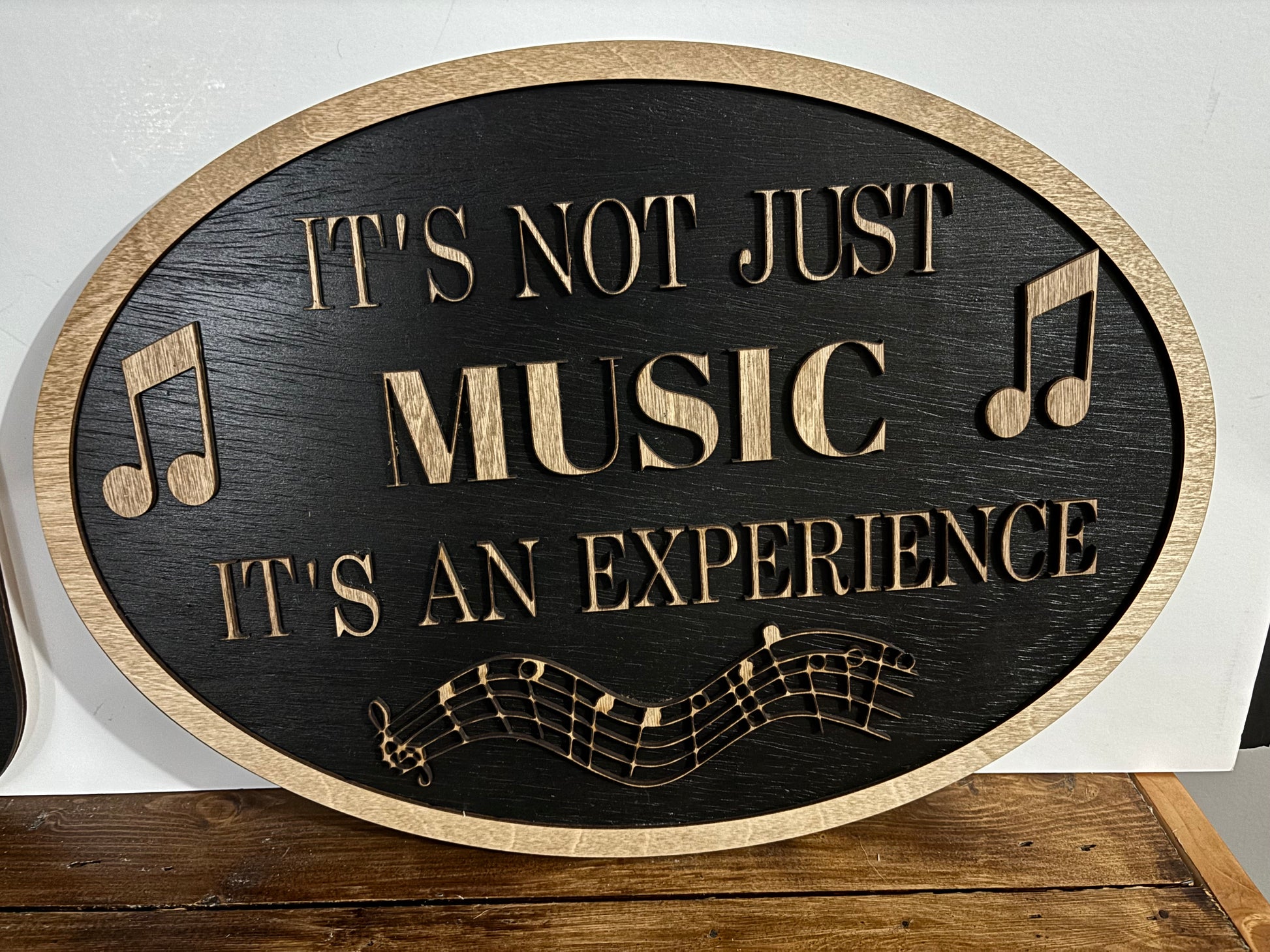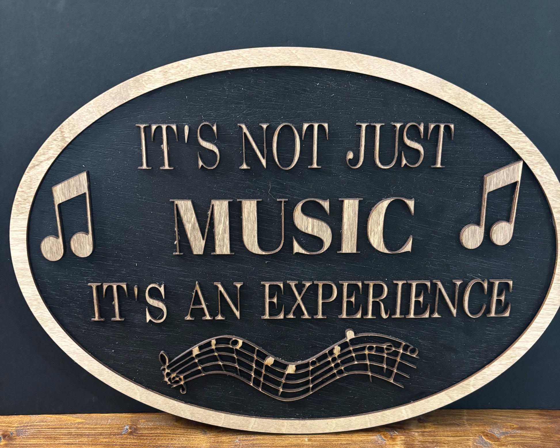 Elevate your music room with our "It's Not Just Music, It's an Experience" sign. Made from laser cut wood and hand-painted, this sign is a perfect addition for any music lover or audiophile looking to personalize their mancave. Bring a touch of elegance and showcase your passion for music with this unique decor piece.