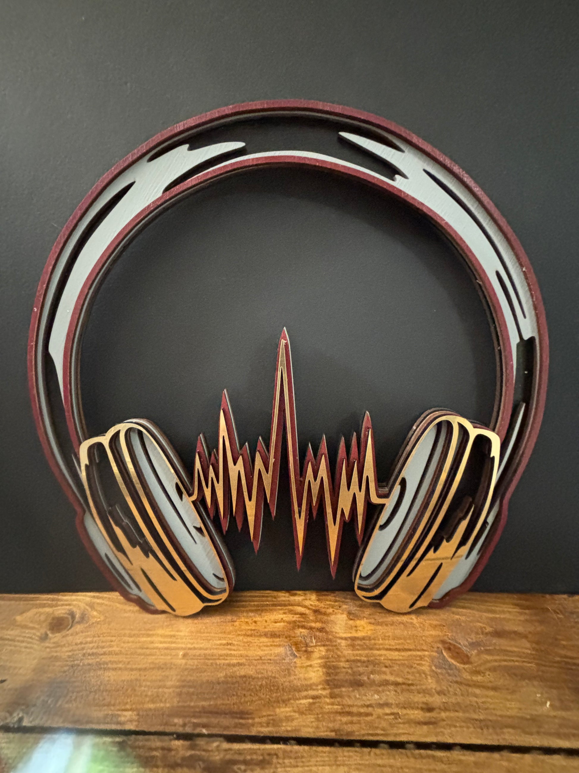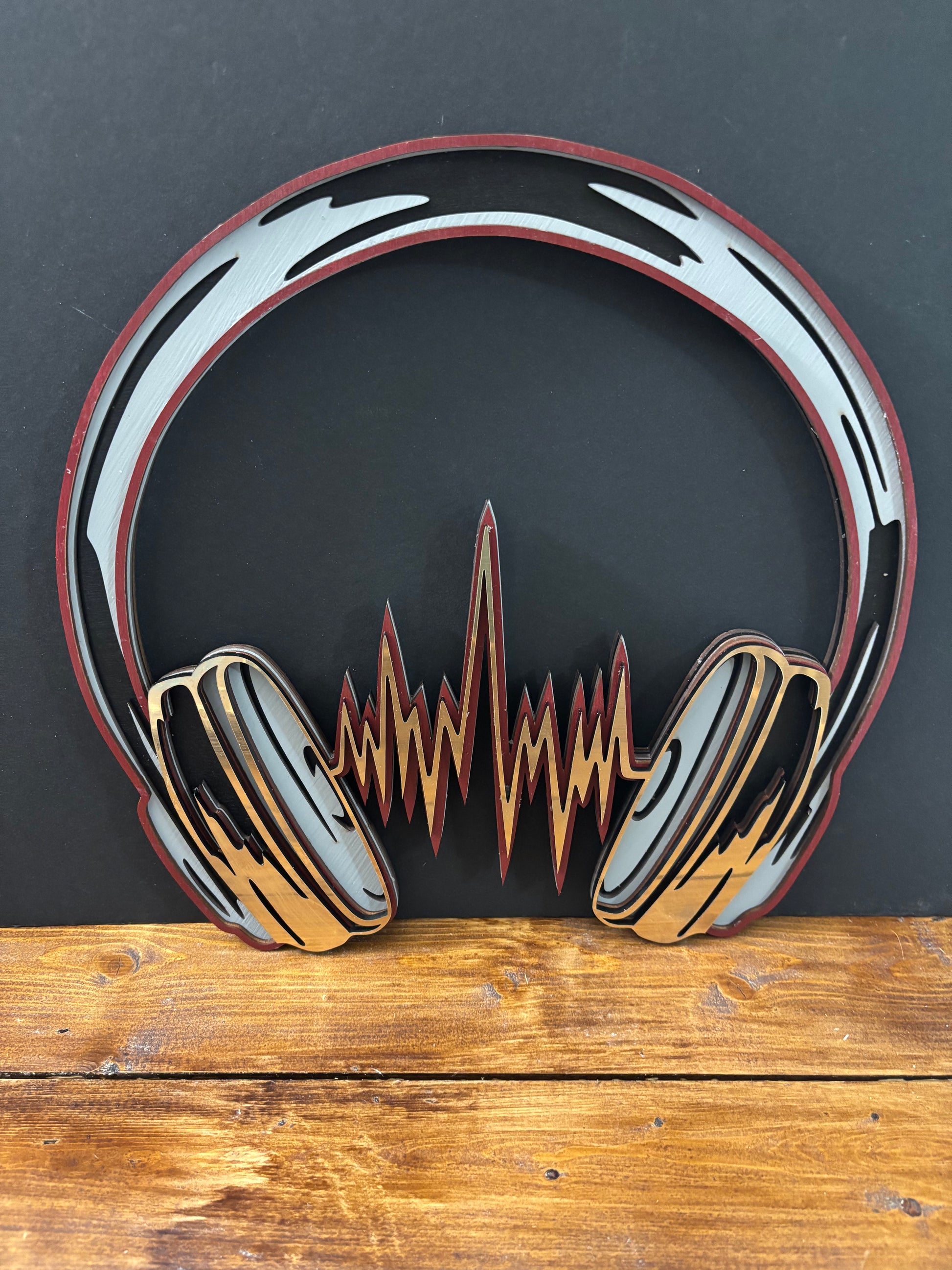 Elevate your music room with our playful Layered Headphone Sign, crafted from premium wood and acrylic for stunning dimensional effect. The perfect gift for audiophiles and music enthusiasts who want to add personality to their space. This eye-catching wall art celebrates the love of music with style!