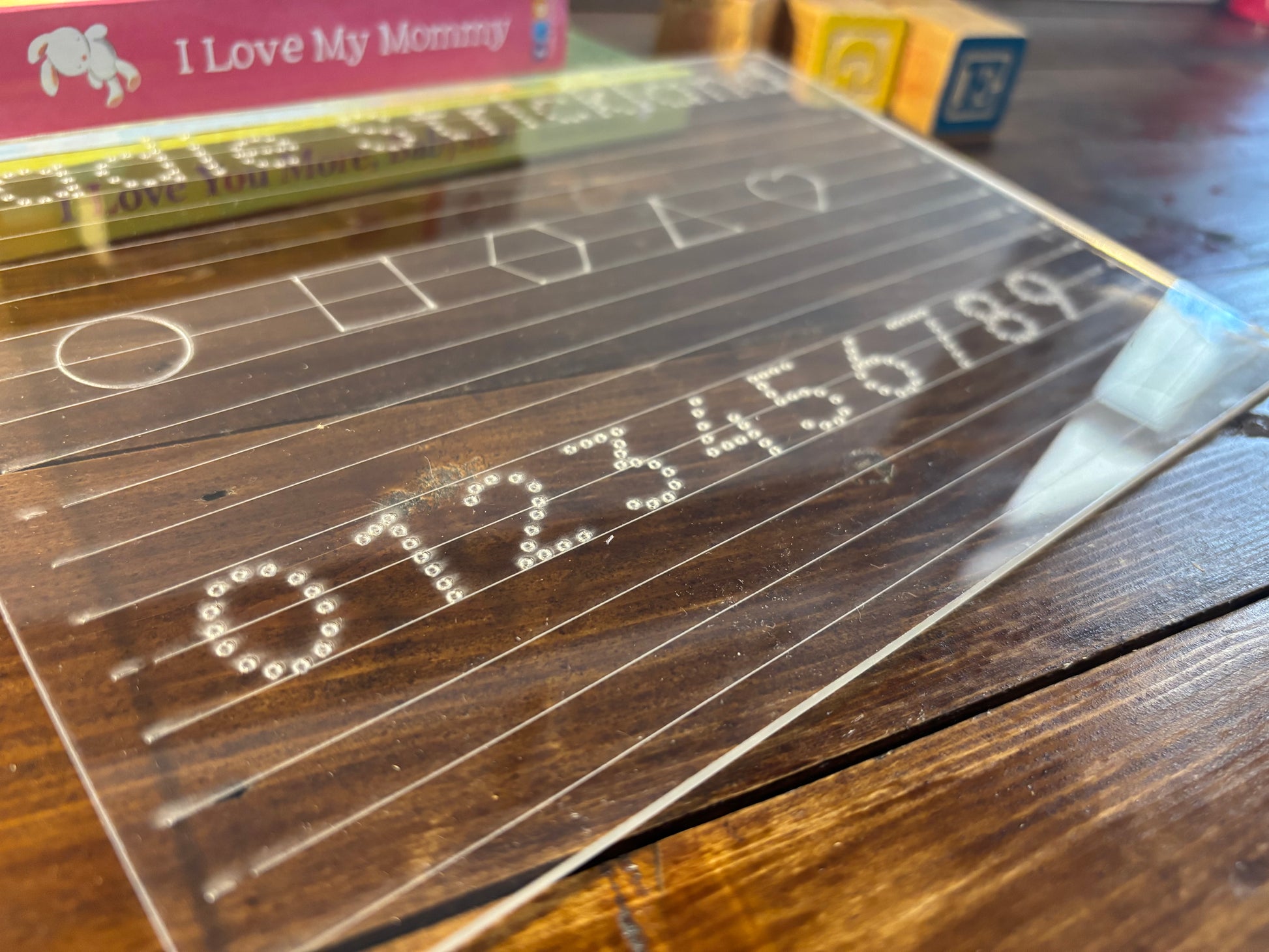 Learn to Write with Trace and Erase! Personalize your child's educational journey by tracing letters of their name, numbers, and shapes on this dry erase acrylic board. Promotes fun and interactive learning with easy erasing. Enhance your child's writing skills with this expert-approved tool.