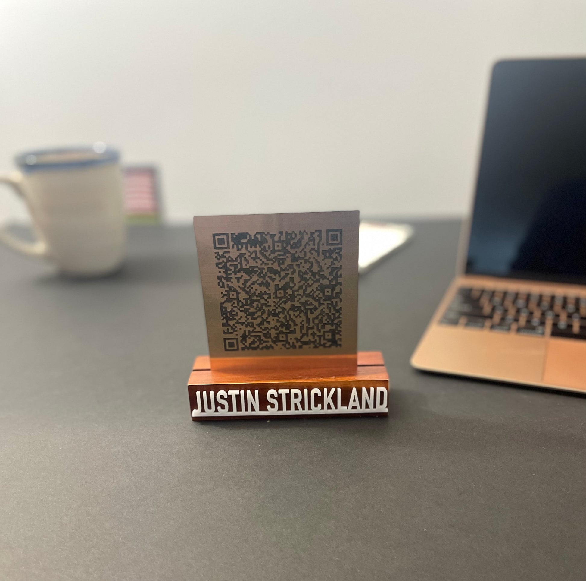 Efficiently share your contact information with our QR Code Business Card. Engraved with your name and easily displayed on your desk, this personalized card is a perfect gift for colleagues. Impress at the workplace with a professional touch.